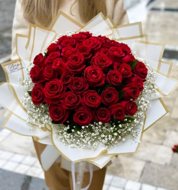 41 kırmızı gül buketi Tasarım 'da kullanılan çiçek ve aksesuarlar stok durumuna göre farklılık gösterilebilir.