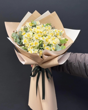 Nergis buketi orta boy Tasarım 'da kullanılan çiçek ve aksesuarlar stok durumuna göre farklılık gösterilebilir.