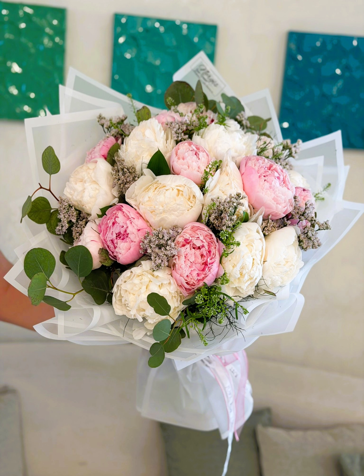 10 adet pembe 10 adet beyaz şakayikten oluşan buket